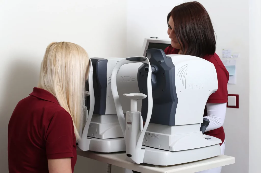 - Messung des Augeninnendrucks berührungsfrei mit dem Luftstoßtonometer oder mit dem Applanationstonometer